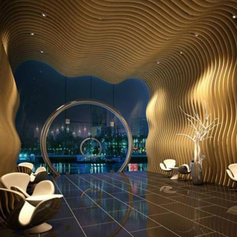 鑒于木紋鋁方通安裝方便,而且造型多樣,設(shè)計師的創(chuàng)意總是不斷推動海格的產(chǎn)品進(jìn)步,海格研發(fā)了包括耐色光涂層、弧形金屬吊頂和表面超平整的復(fù)合板等。木紋吊頂?shù)谋砻嫣幚砑b飾性和功能性于一體,先進(jìn)的輥涂和噴涂設(shè)備可以提供自由的表面處理方案,結(jié)合系統(tǒng)可同時滿足保溫,吸聲,抗菌,防火等使用功能,實(shí)現(xiàn)裝飾和功能的完美平衡。